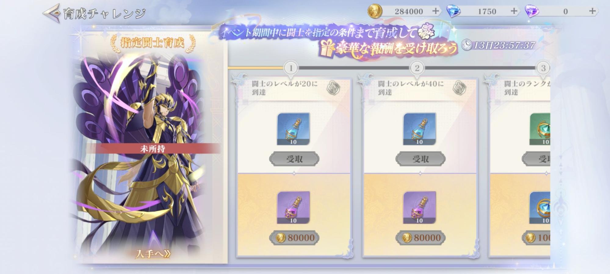 イベント期間中、闘士「眠りを司る神・ヒュプノス」を指定の条件まで育成すると、豪華報酬を受け取れます!