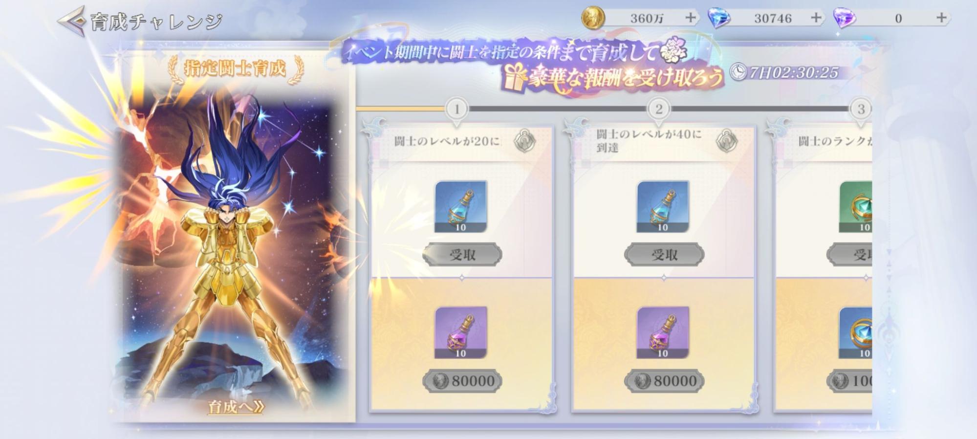 イベント期間中、闘士「双子座・カノン」を指定の条件まで育成すると、豪華報酬を受け取れます!