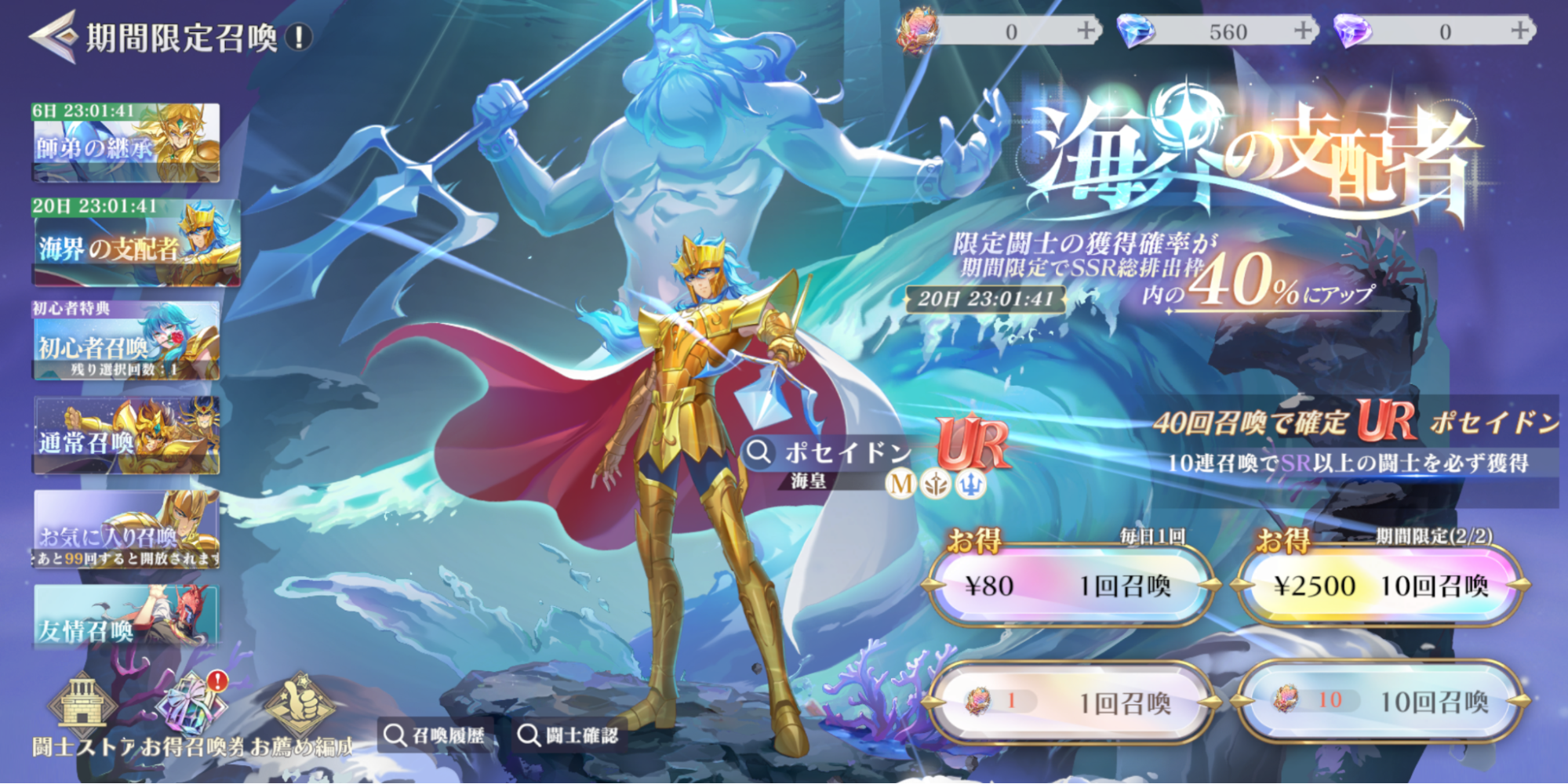 UR/SSR確定時に40%の確率でUR「海皇ポセイドン」を獲得可能!